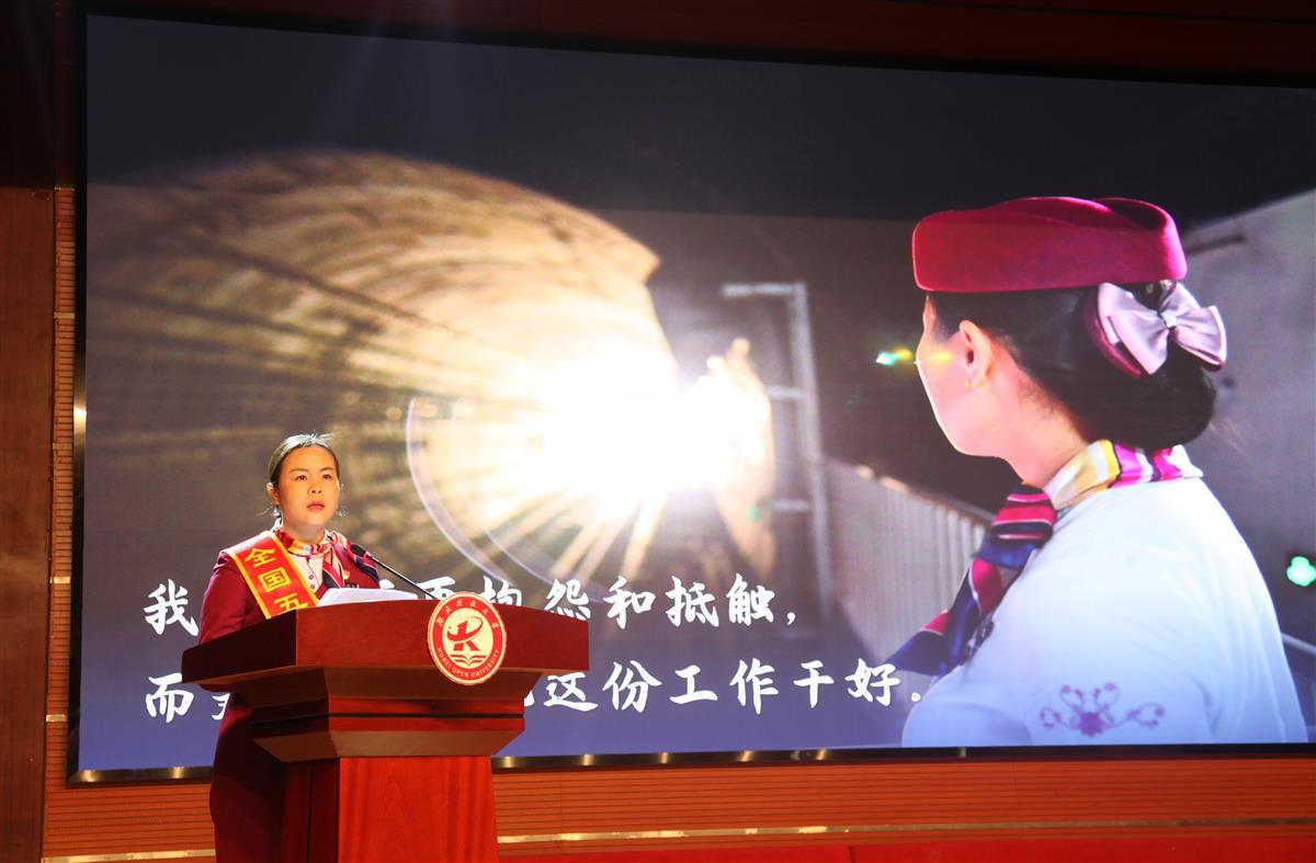会上,全国五一劳动奖章获得者,中铁武汉电气化局信号女子突击队队长王艳鸽一声嘹亮的“同学们,大家下午好”,打破了会场的宁静。王艳鸽曾是一名普通的中专生,工作之余,她以“三年考一次证”的毅力,成功考取高级技师,并获得了全国交通技术能手的称号。她在学历上提升自己,在工作中精进技能。“我们的衣服不是穿破的,而是汗水泡烂的。”姚婕说,女性同样可以在铁路行业发光发热,产业工人也可以像明星一样耀眼。