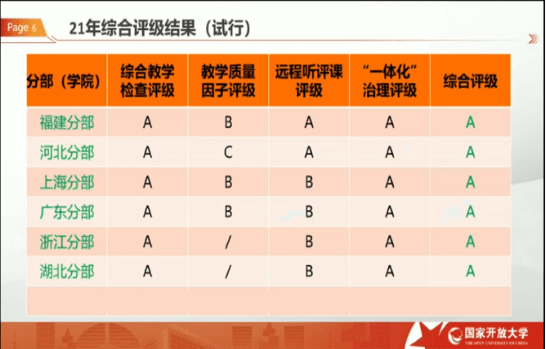 2021国家开放大学综合教学检查评级结果