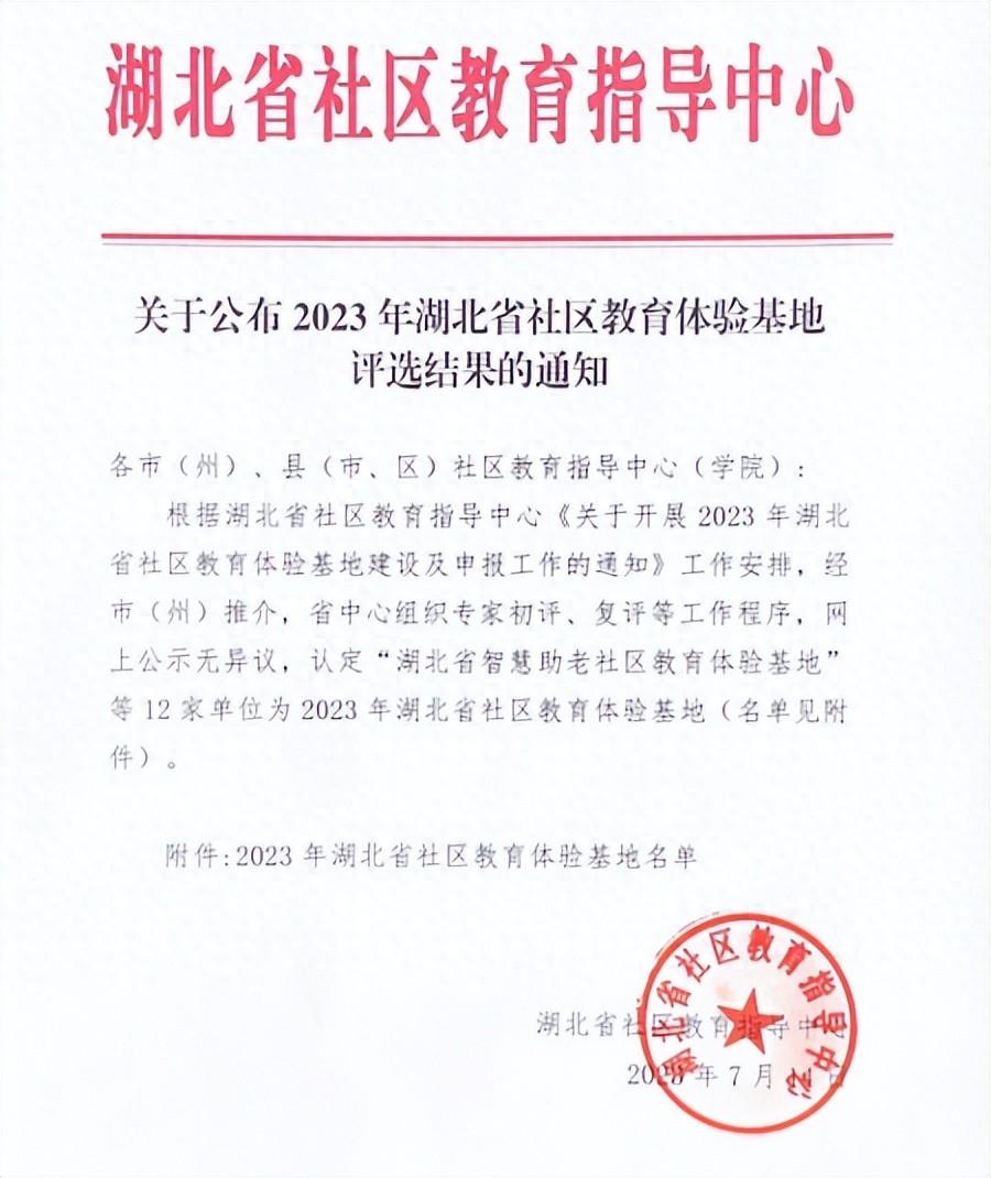 省级“社区教育体验基地”评选结果通知截图