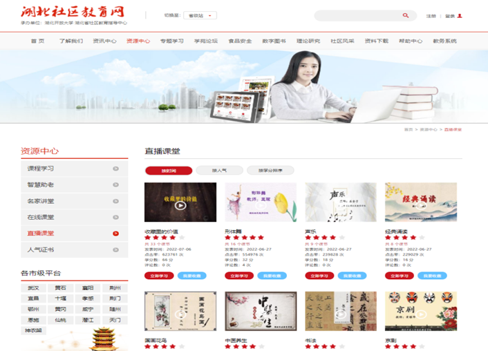 推进平台互联互通。推进湖北社区教育网功能扩展升级改造工作,促进形成教育数字化应用特色、拓宽”荆楚学习广场在社区教育、老年教育等领域的应用。