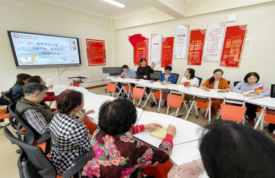 学校坚持党建引领老年教育高质量发展,今年,获批中成协“老年大学特色建设项目实验校”,工作实践入选国家老年大学“老年教育优秀案例”。还成立了“银发党员之家”“银发红色宣讲团”“银发志愿者服务队”,进一步加强老年教育规范管理,并为老年人搭建广泛有效的社会参与及展示平台。开展了“书润夕阳、悦读留香”主题阅读、庆祝建党103周年参观学习交流、国庆征文宣讲、走进社区志愿服务等系列活动,并结合重阳节、敬老月等重要节日,开展健康义诊、传统文化知识讲座等特色活动,凝聚银龄力量,助力余热生辉,打造银龄品牌。