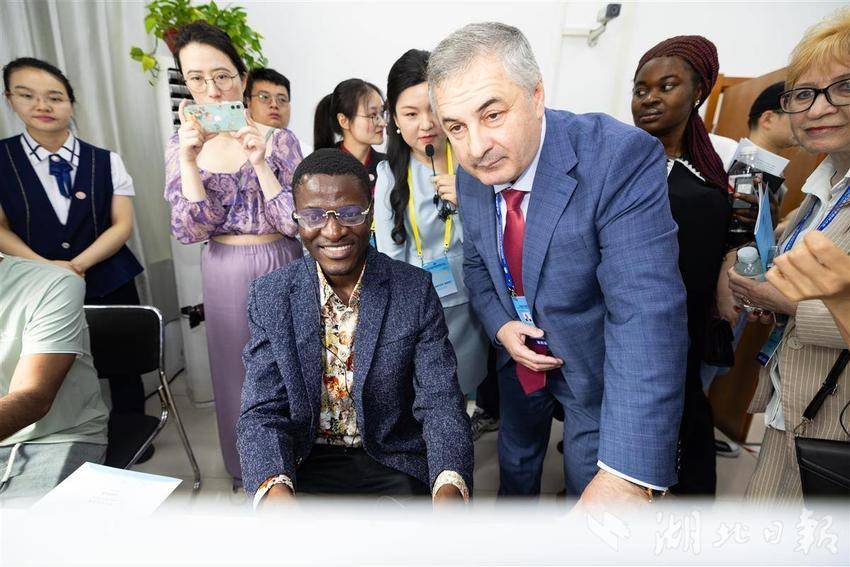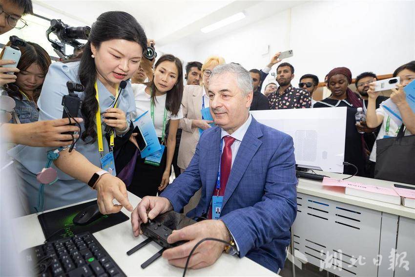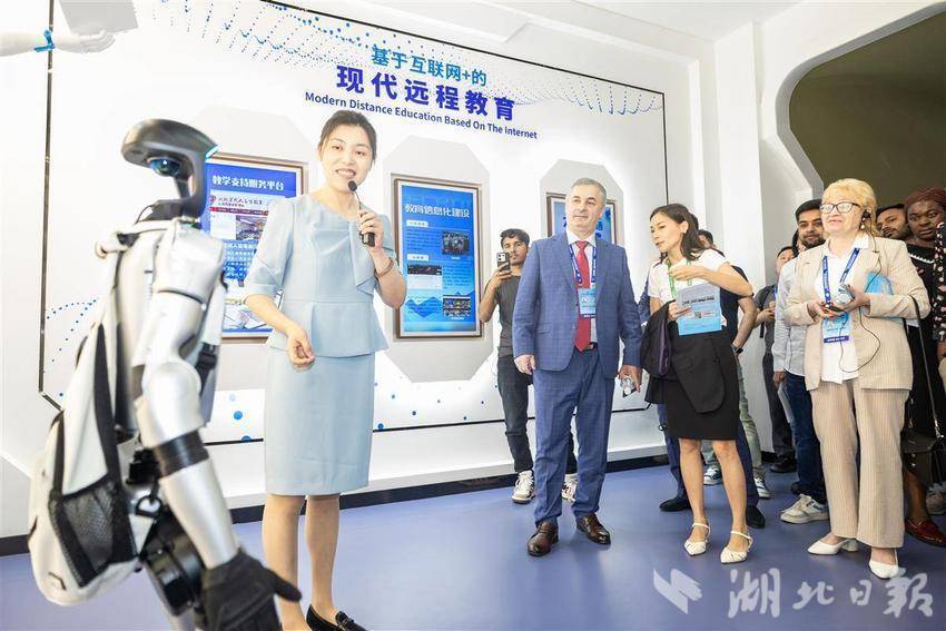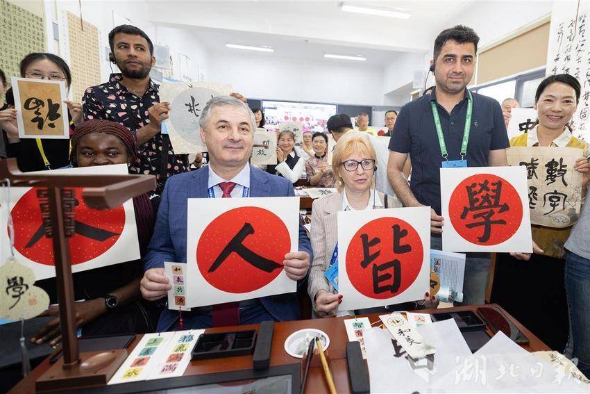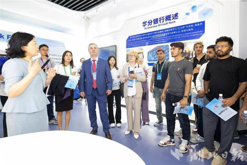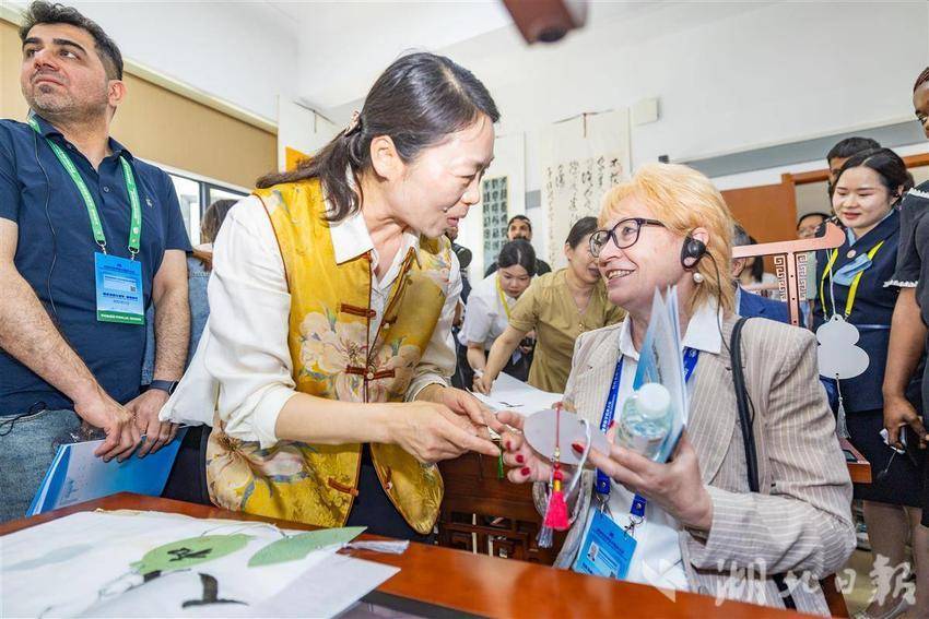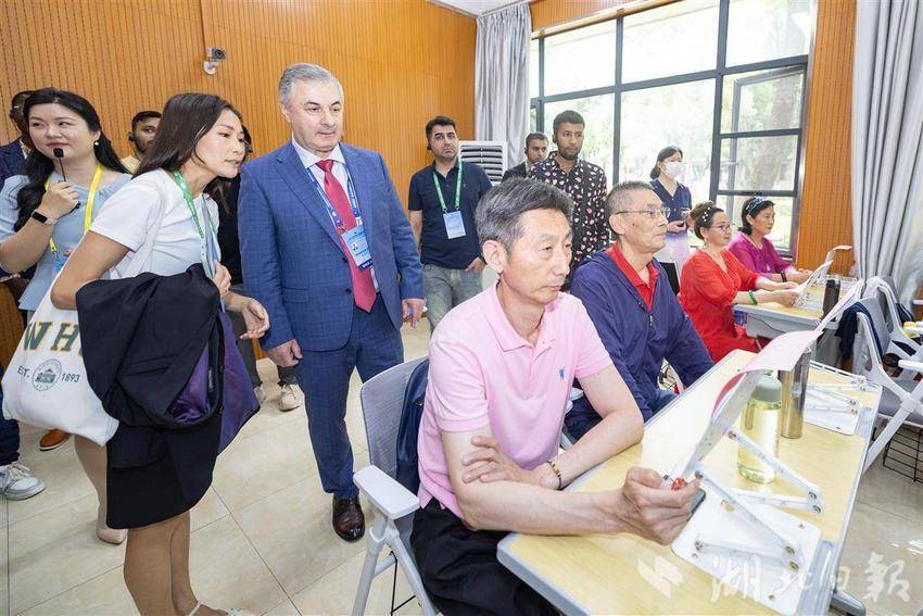 5月14日,2025世界数字教育大会在武汉召开前夕,参会的国内外嘉宾们参访湖北开放大学,在学校内体验各类数字教育技术,学习与感受中华传统文化。湖北开放大学作为国家数字化学习资源中心湖北分中心,是2025世界数字教育大会(终身教育)现场观摩点。(湖北日报全媒记者 何宇欣 实习生 李昕蓉 摄)