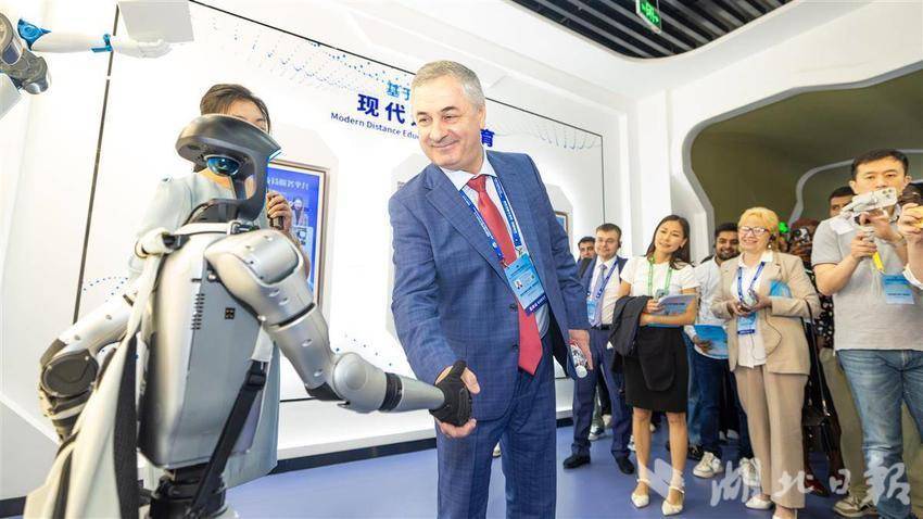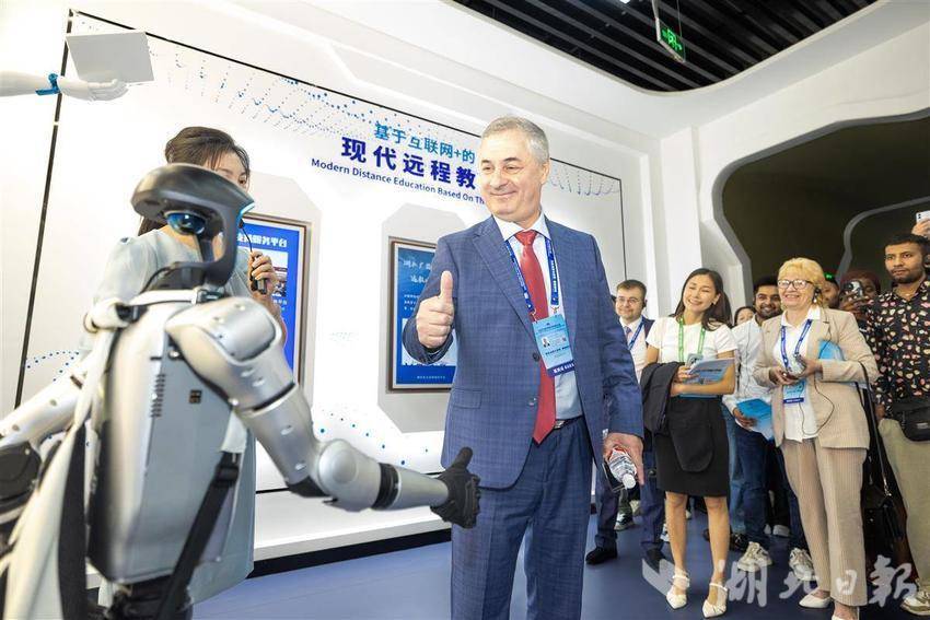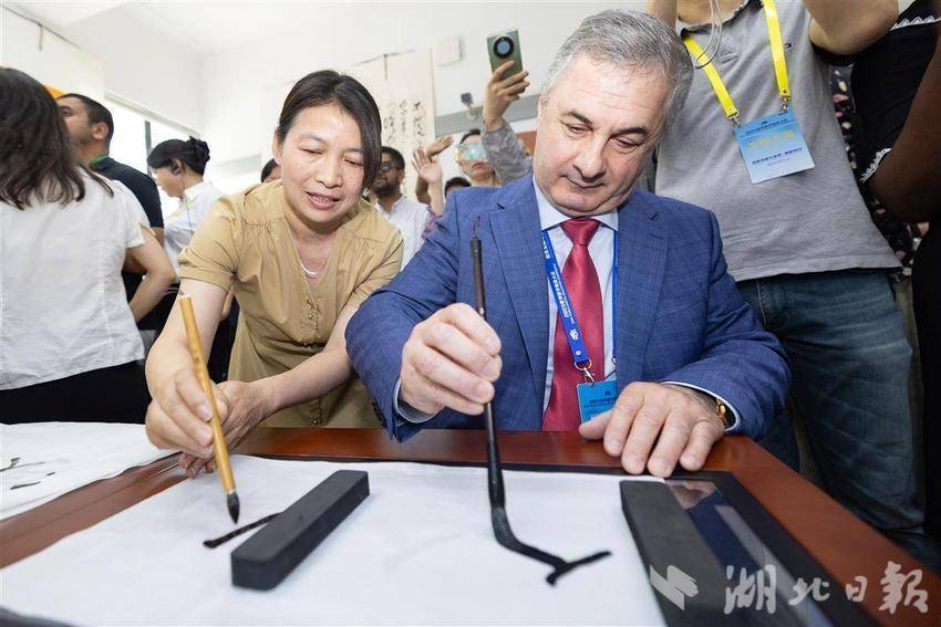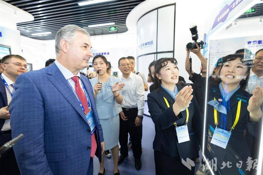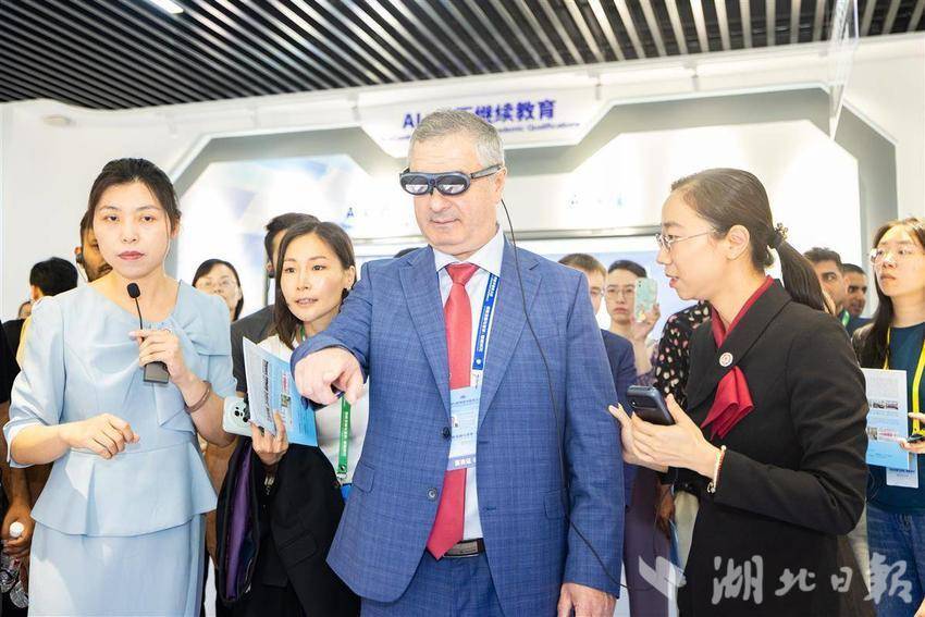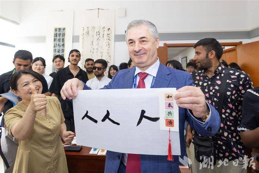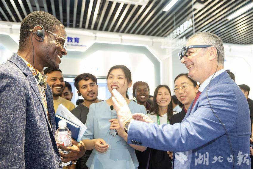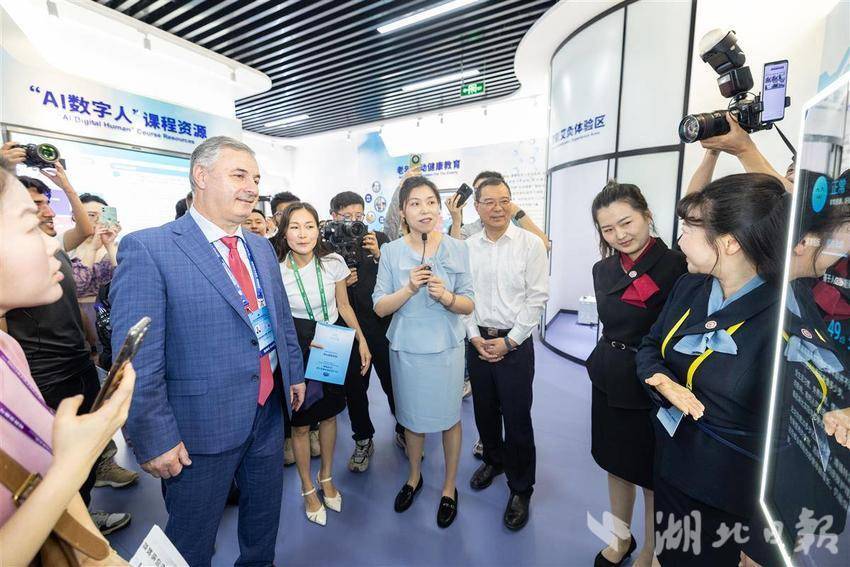 5月14日,2025世界数字教育大会在武汉召开前夕,参会的国内外嘉宾们参访湖北开放大学,在学校内体验各类数字教育技术,学习与感受中华传统文化。湖北开放大学作为国家数字化学习资源中心湖北分中心,是2025世界数字教育大会(终身教育)现场观摩点。(湖北日报全媒记者 何宇欣 实习生 李昕蓉 摄)