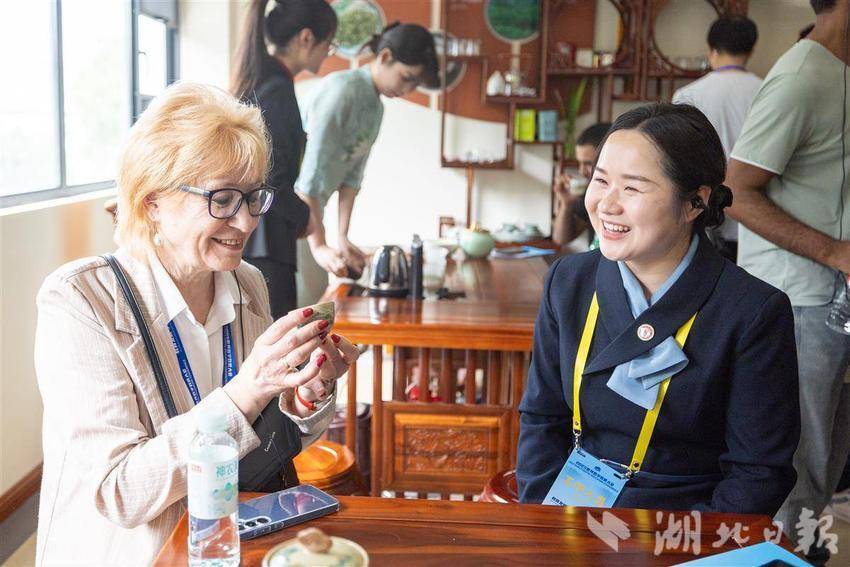 参会的国内外嘉宾们体验中国茶道文化。