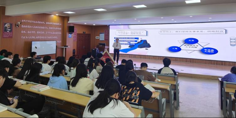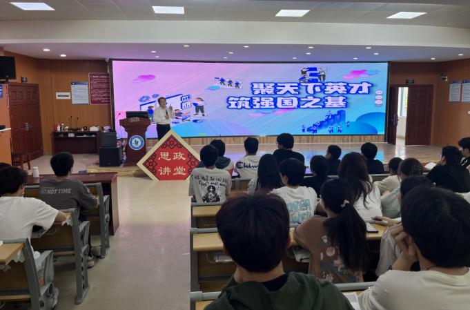 本网讯(通讯员 高雅芯/文 韩希锦/图)4月12日下午,校党委副书记、校长钟毓宁走进我校2201思政讲堂,为2022级物流管理专业学生讲授“聚天下英才,筑强国之基”主题思政课。