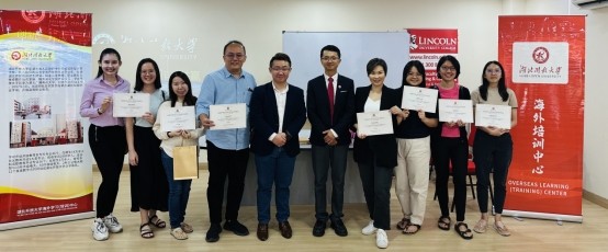 师生合影(左五为林肯大学学院副校长KelvinTong博士)