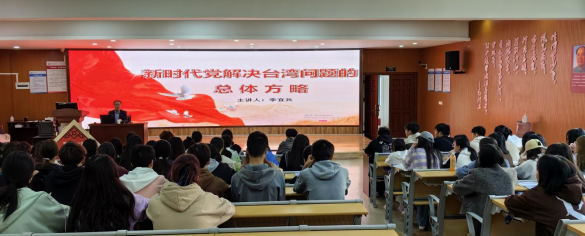 课堂上,围绕台湾问题的历史经纬、中国共产党推进祖国统一的历史过程和多项举措,李宜兵深刻阐明了台湾是中国的一部分的历史事实和法理事实,中国共产党为解决台湾问题、实现祖国完全统一所进行的不懈奋斗,并对党的十九届六中全会上形成的“解决台湾问题的总体方略”进行了详细解读。