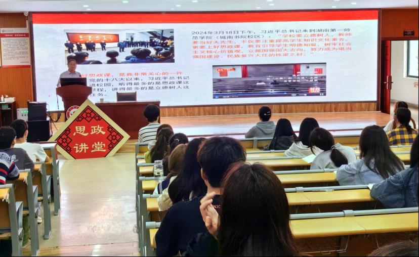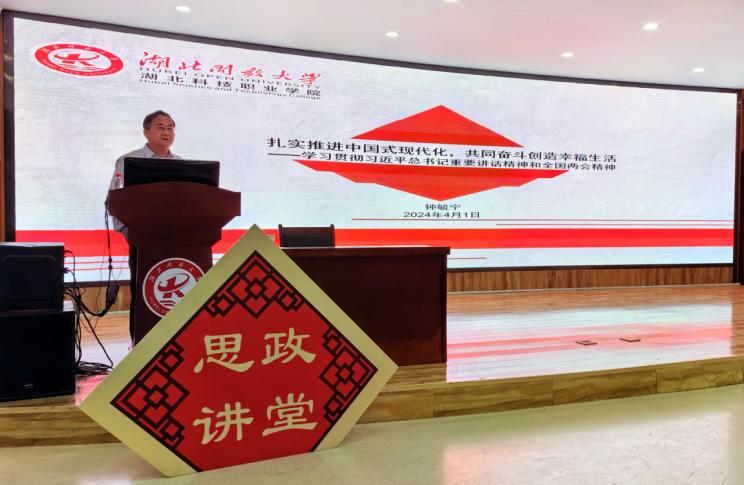 课上,钟毓宁聚焦主题,重点解读了两会期间习近平总书记重要讲话精神,具体阐述了新质生产力的内涵、战略性新兴产业与未来产业的发展趋势以及职业教育面临的机遇与挑战,深刻回答了新形势下“湖科学子何往”“湖科学子何为”的问题。