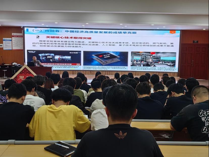 同学们表示课堂充实紧凑、干货满满,何书记的精彩讲授,帮助大家充分认识了国内外发展大势,加深了对“新质生产力”热词的理解,今后要继续强化个人本领素质,主动适应新质生产力的发展变化,为强国建设贡献青春力量。