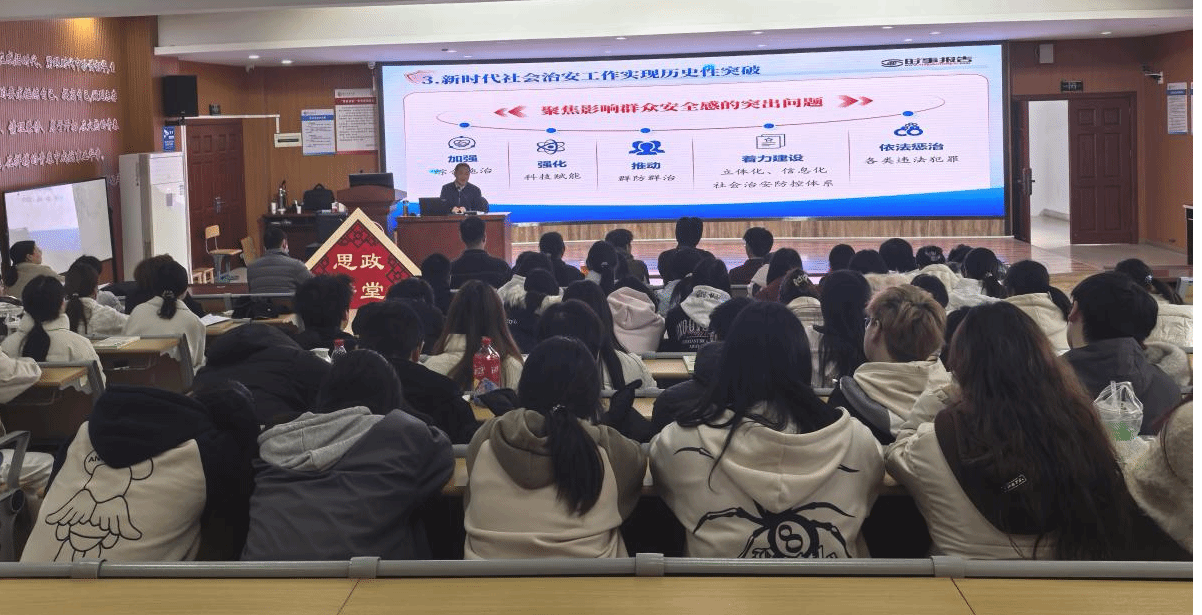在回顾新时代平安中国建设的历史性成就时,丁华涛用鲜活的案例展现了“中国之治”的巨大优势。我国已成为世界上公认的最安全国家之一,社会治安持续向好,人民群众安全感不断增强。结合软件专业特点,丁华涛强调在信息化、智能化迅猛发展的今天,网络安全、数据安全已成为国家安全的重要组成部分。作为未来信息技术领域的建设者和创新者,同学们不仅要掌握扎实的专业技能,更要涵养家国情怀,强化底线思维,自觉维护网络空间清朗,筑牢数字时代的安全屏障。